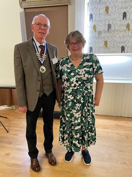 New member Janet Harrison welcomed into the club by president John Gill. Our second lady member and one hopes more to come?