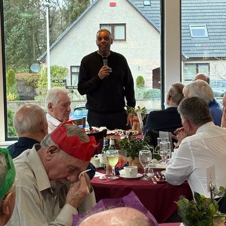 Neil Cameron commenced his talk with a joke and then went on to comment on his early life. Born in Edinburgh and of Nigerian heritage he was subsequently adopted and took on the Cameron name. Married for 42 years to his wife who hails from Northern Ireland and they have two sons.