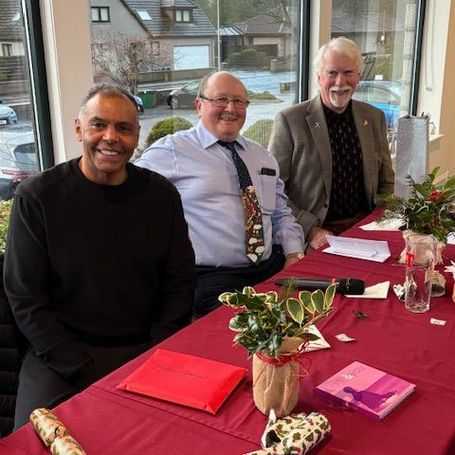 Vice President Brian Jamieson opened proceeding by welcoming members, their partners, and other guest's to the lunch and apologised for the absence of president Frank Reilly who was ill with Flu. Brian then introduced our guest speakers Neil Cameron who is the Pastor at the Apex Church in Peterhead, and Doug Winchester, former solicitor of Ellon.
